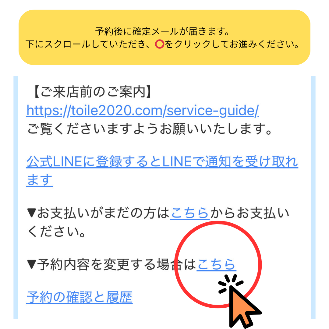ご予約確定後のメールをご覧いただき、ご来店前の準備についてご確認ください。