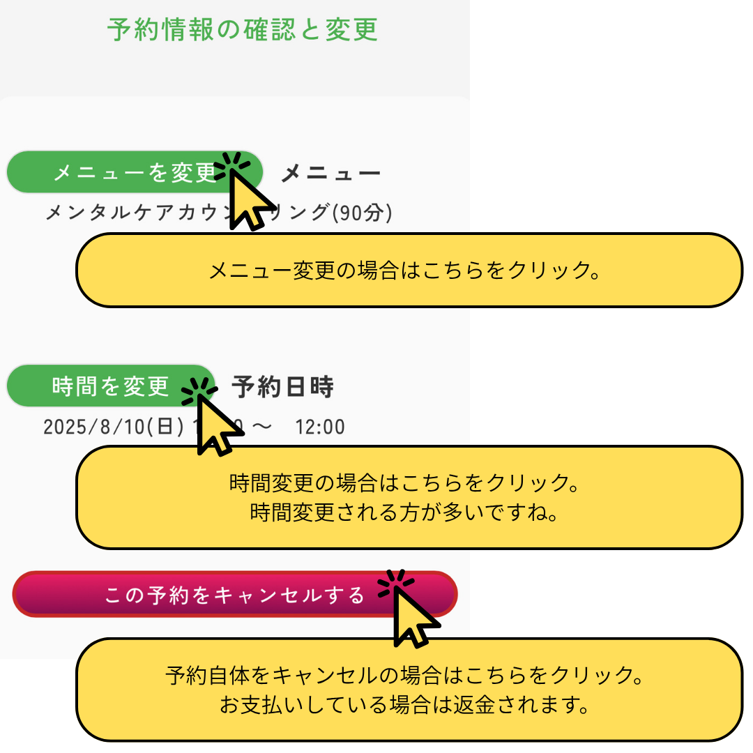- ご予約変更・キャンセルは、予約日の前日までにお手続きください